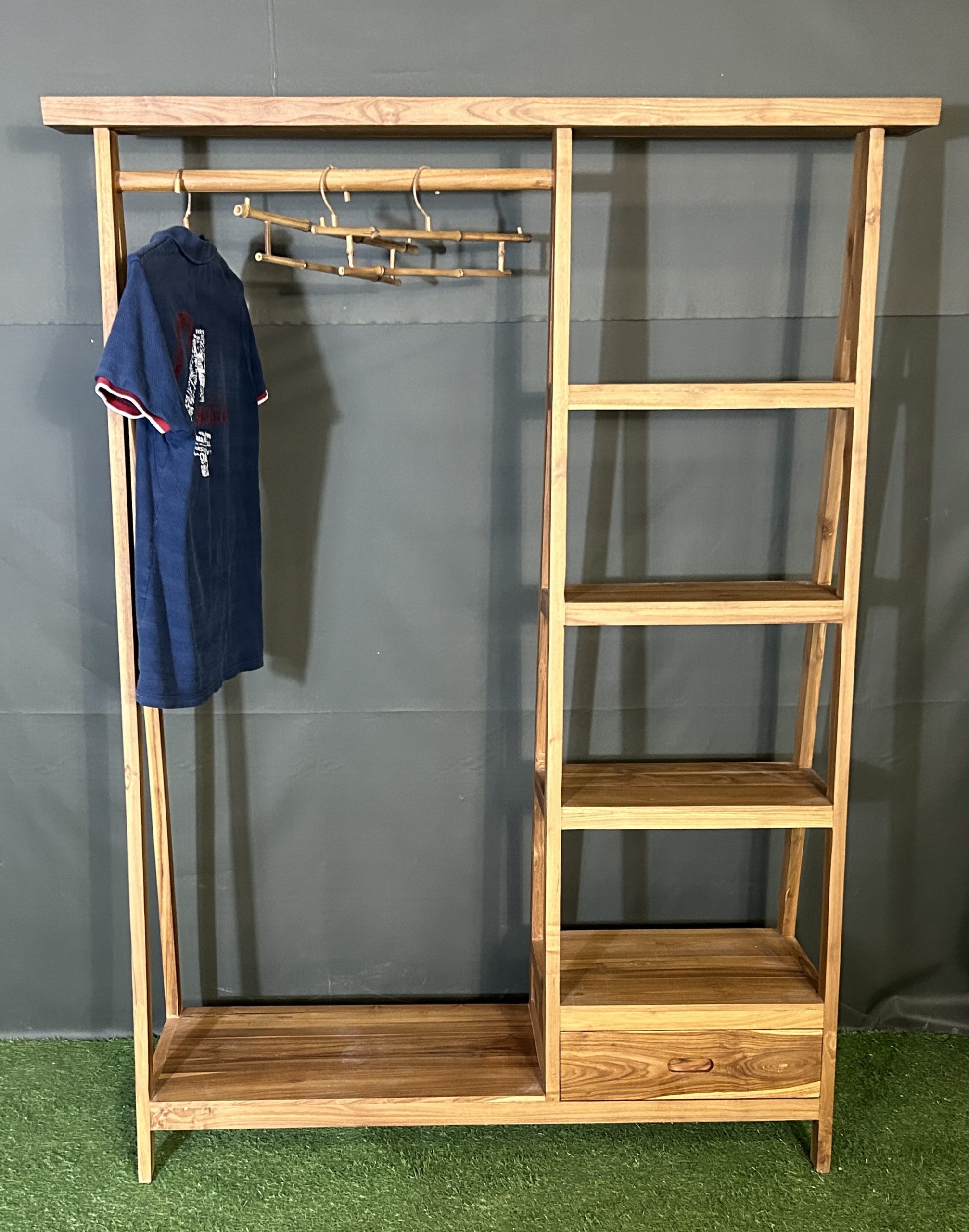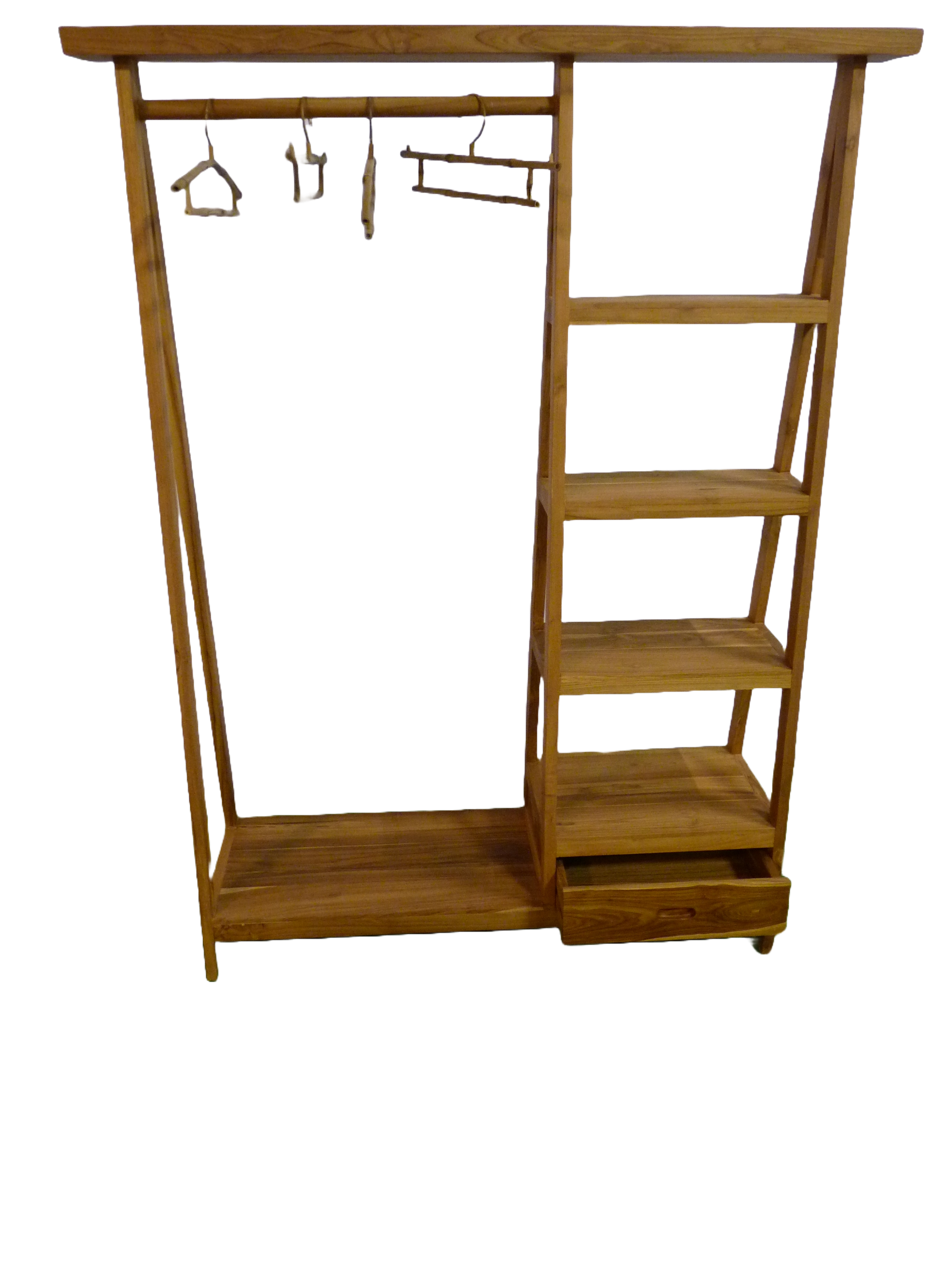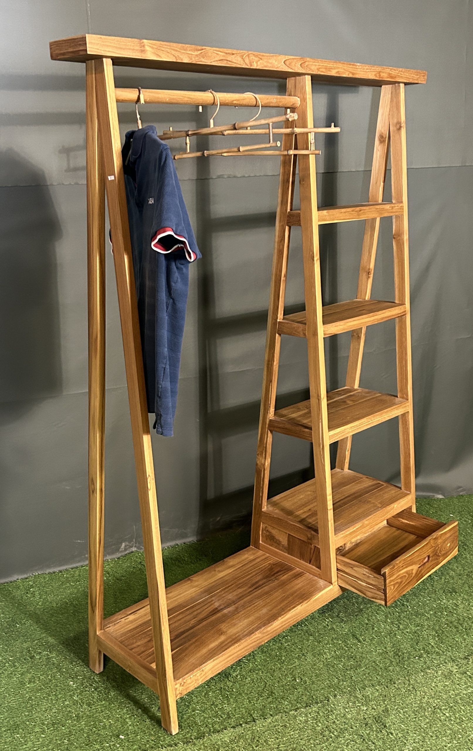 Portant avec 3 étagères et un tiroir en Teck de fabrication artisanale